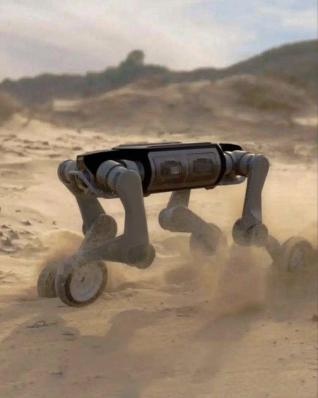 红翼中型机器狗在轮足设计上实现全新升级,巧妙融合轮式移动的速度优势与足式运 动的灵活特性。以中型体积为基础,它既具备狭小空间的通过能力,又能兼顾负载与续航表现,可轻松适应行业恶劣场景需求。